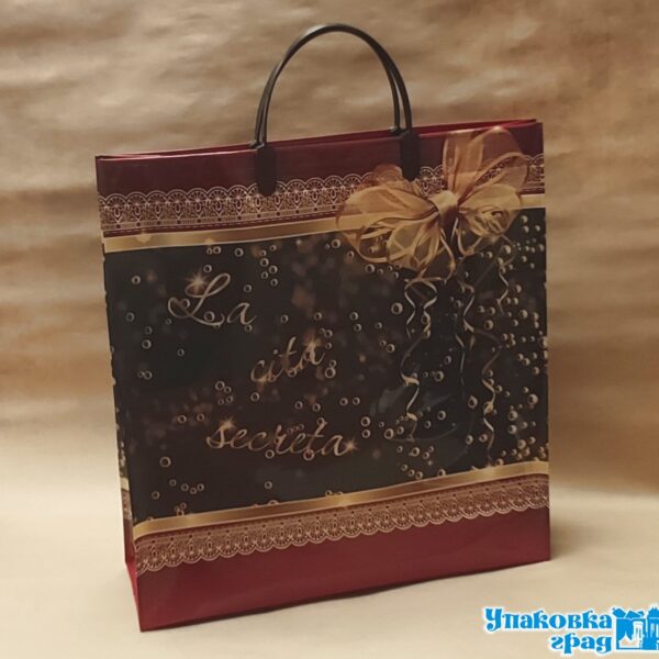 Пакет с пластиковой ручкой, размер 36*35*7 см. Красивый плотный пакет подходит для использования в быту и как подарочная упаковка.
