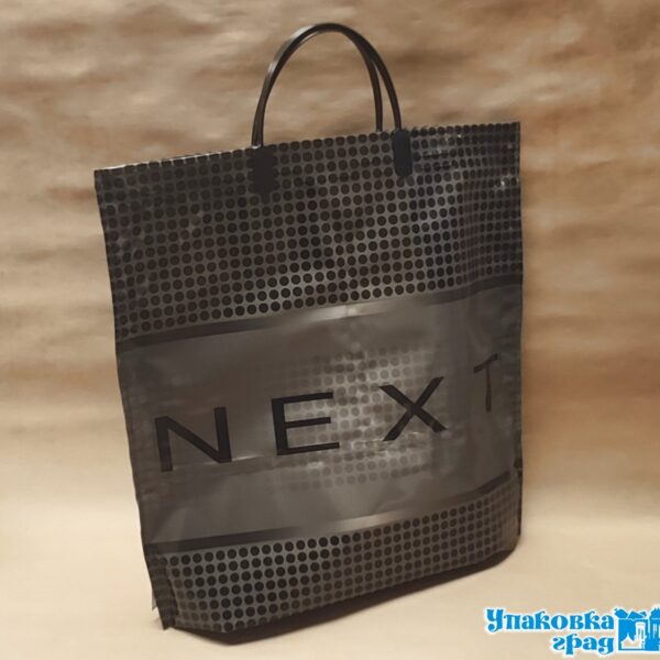 Пакет с пластиковой ручкой, плотный, глянцевый, размер 36*34*5см. Применяется для бытовых нужд и как подарочная упаковка.