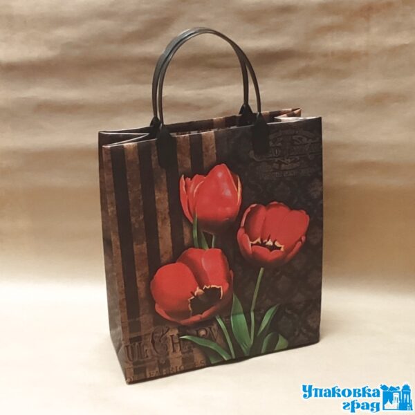 Пакет с пластиковой ручкой, размер 36*35*5 см. Красивый плотный пакет подходит для использования в быту и как подарочная упаковка.