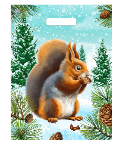 Пакет с пластиковой ручкой, плотный, глянцевый, размер 36*34*5см. Применяется для бытовых нужд и как подарочная упаковка.
