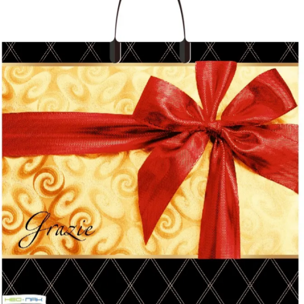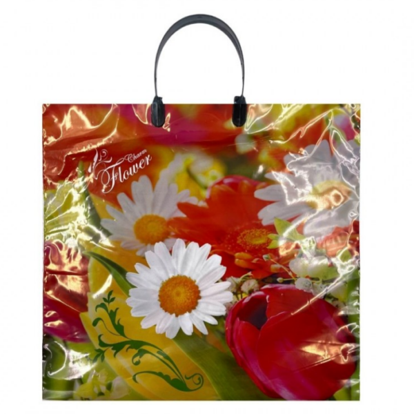 Пакет глянцевый с пластиковой ручкой, размер 36*34*5 см. Красивый плотный пакет подходит для использования в быту и как подарочная упаковка.