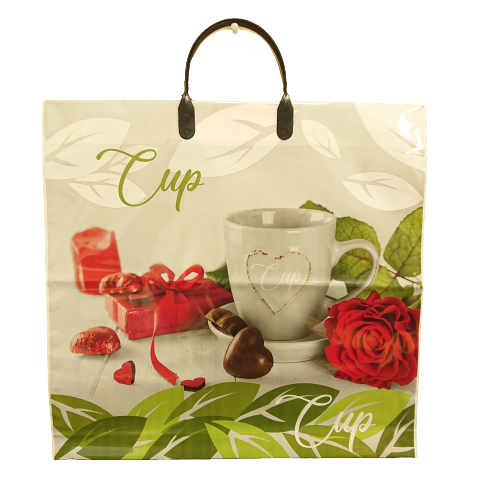Пакет с пластиковой ручкой, размер 36*35*5 см. Красивый плотный пакет подходит для использования в быту и как подарочная упаковка.