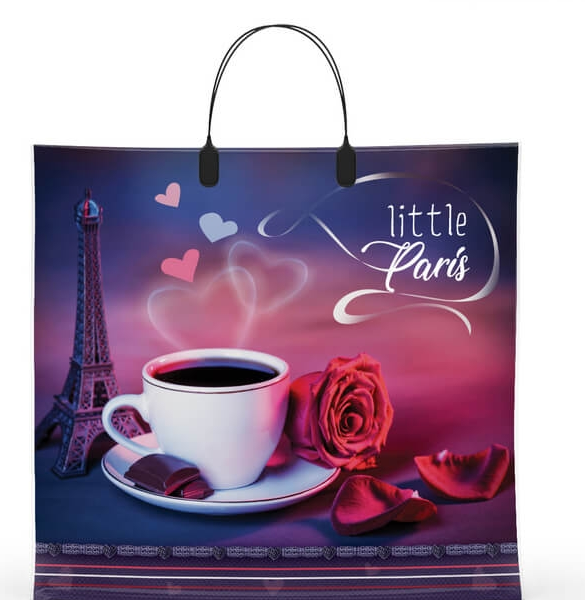 Пакет с пластиковой ручкой, размер 36*35*7 см. Красивый плотный пакет подходит для использования в быту и как подарочная упаковка.