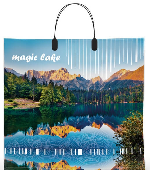 Пакет с пластиковой ручкой, плотный, глянцевый, размер 36*34*5см. Применяется для бытовых нужд и как подарочная упаковка.