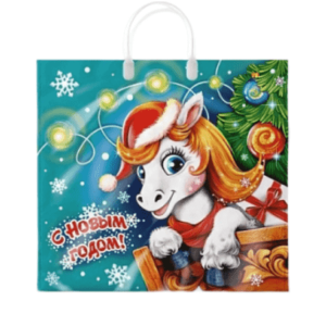 Новогодний пакет из мягкого пластика, размер 23*27+10см. Используется для упаковки подарка, а так же для бытовых нужд. Продается по 10 штук.
