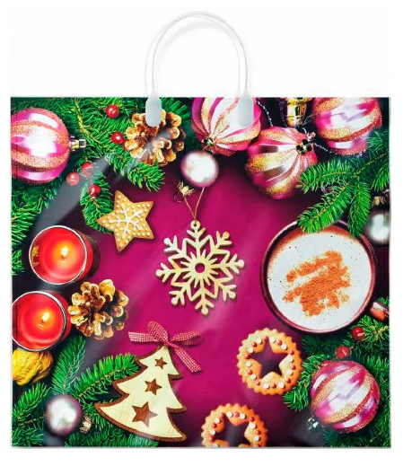 Пакет с пластиковой ручкой новогодней тематики, размер 40*40*5 см. Красивый плотный пакет подходит для использования в быту и как подарочная упаковка.