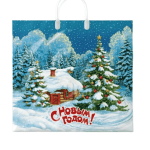 Новогодний пакет из мягкого пластика, размер 23*27+10см. Используется для упаковки подарка, а так же для бытовых нужд. Продается по 10 штук.