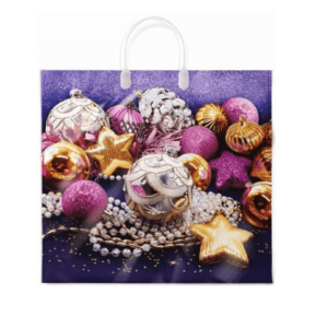 Пакет новогодний праздничный с пластиковой ручкой, размер 38*35*10 см. Красивый плотный пакет подходит для использования в быту и как подарочная упаковка. Продается по 10 штук.