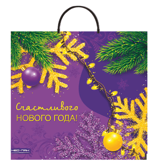 Пакет новогодний праздничный с пластиковой ручкой, размер 38*35*10 см. Красивый плотный пакет подходит для использования в быту и как подарочная упаковка. Продается по 10 штук.