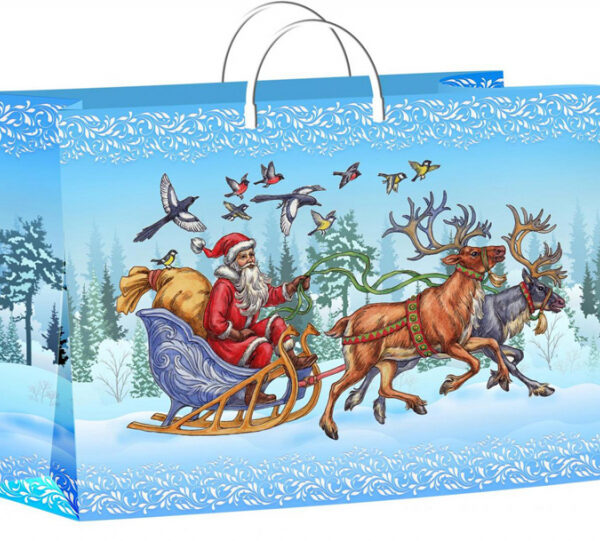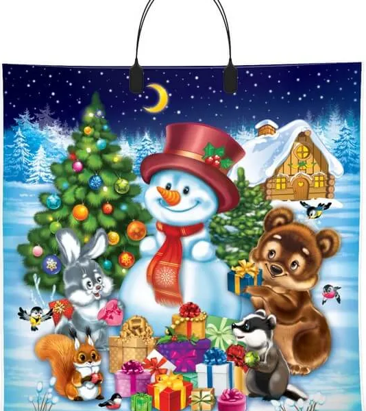 Пакет праздничный новогодний с пластиковой ручкой, размер 36*37*5 см. Красивый плотный пакет подходит для использования в быту и как подарочная упаковка.
