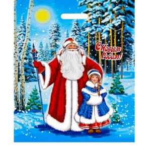 Пакет новогодний праздничный с пластиковой ручкой, размер 40*44*10 см. Красивый плотный пакет подходит для использования в быту и как подарочная упаковка. Продается по 10 штук.
