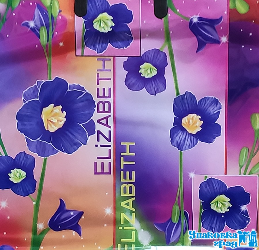 Пакет глянцевый с пластиковой ручкой, размер 36*34*5 см. Красивый плотный пакет подходит для использования в быту и как подарочная упаковка.