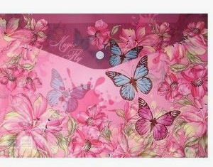 Папка-конверт формата А4 на кнопке толщиной 110 мкм «МИКС Цветы» служит для хранения и транспортировки бумаг, защищает документы от грязи и механического воздействия.