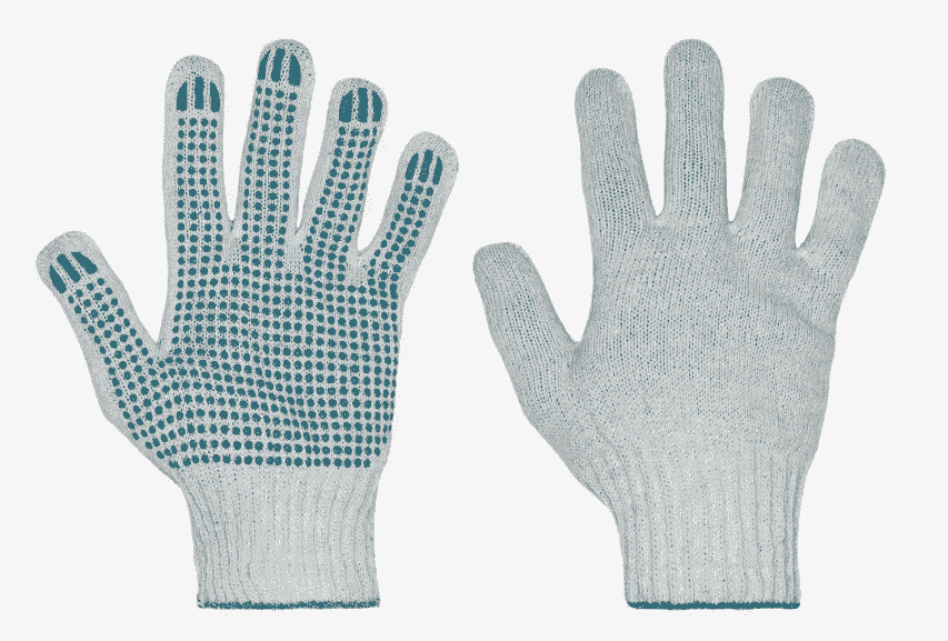 Перчатки рабочие хозяйстенные Х/Б, с ПВХ волна, используются для работ на складах торговых и производственных предприятий, автосервисах, гаражах. Широко применяются при уборке, садовых, ремонтных, строительных, хозяйстенных и прочих бытовых работах. Материал перчаток прочный, руки надежно защищены летом и зимой.