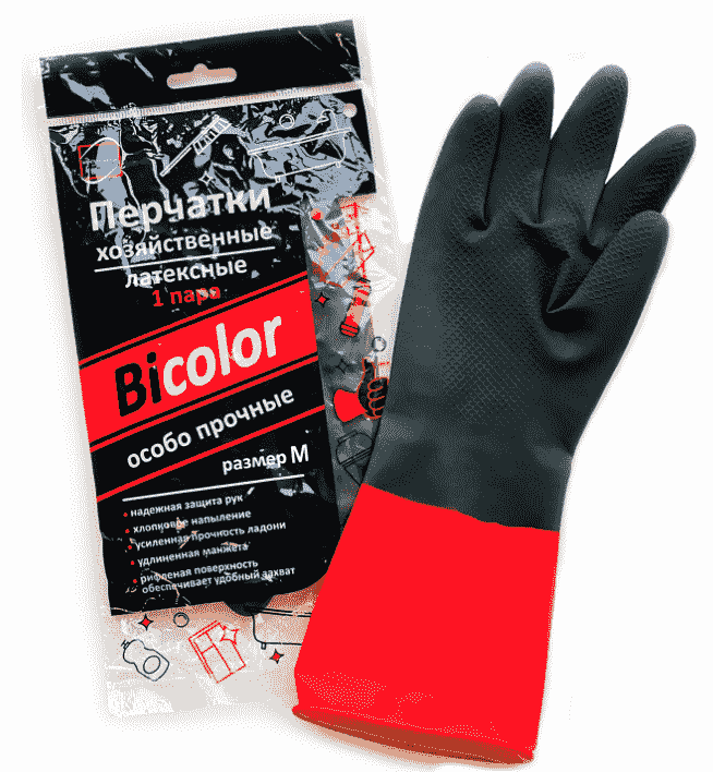 Перчатки латексные «Биколор» M черно-красные (12пар/уп/240 КП) предназначены для выполнения хозяйственных, садовых и строительных работ. Перчатки обеспечивают защиту рук от воды, растворов нетоксичных веществ, бытовых химикатов и загрязнений.