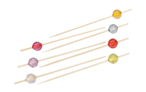 Декоративные пики Жемчуг черный изготовлены из натурального бамбука. Используются для создания канапе, мини-бутербродов, закусок. Остро заточенные, прочные. Длина пики для канапе — 12 см. В упаковке 100 штук.