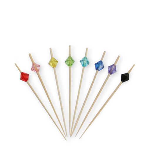 Декоративные пики Жемчужина изготовлены из натурального бамбука. Используются для создания канапе, мини-бутербродов, закусок. Остро заточенные, прочные. Длина пики для канапе — 9 см. В упаковке 100 штук.