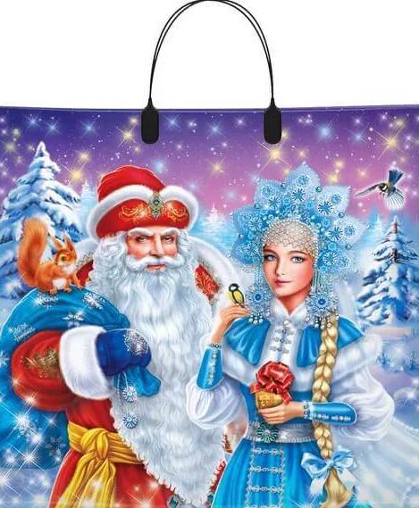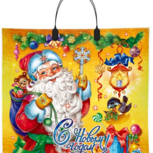 Пакет с пластиковой ручкой новогодней тематики, размер 38*44*5 см. Красивый плотный пакет подходит для использования в быту и как подарочная упаковка.
