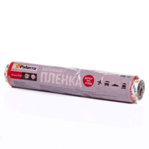 Пленка багажная 30см*70м, плотность 12мкр. Используется для защиты от повреждений чемоданов, дорожных сумок во время путешествий. Рулона будет достаточно для упаковки 3-4 чемоданов.