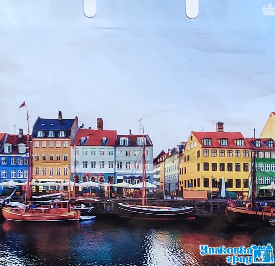 Пакет с пластиковой ручкой, размер 36*35*7 см. Красивый плотный пакет подходит для использования в быту и как подарочная упаковка.