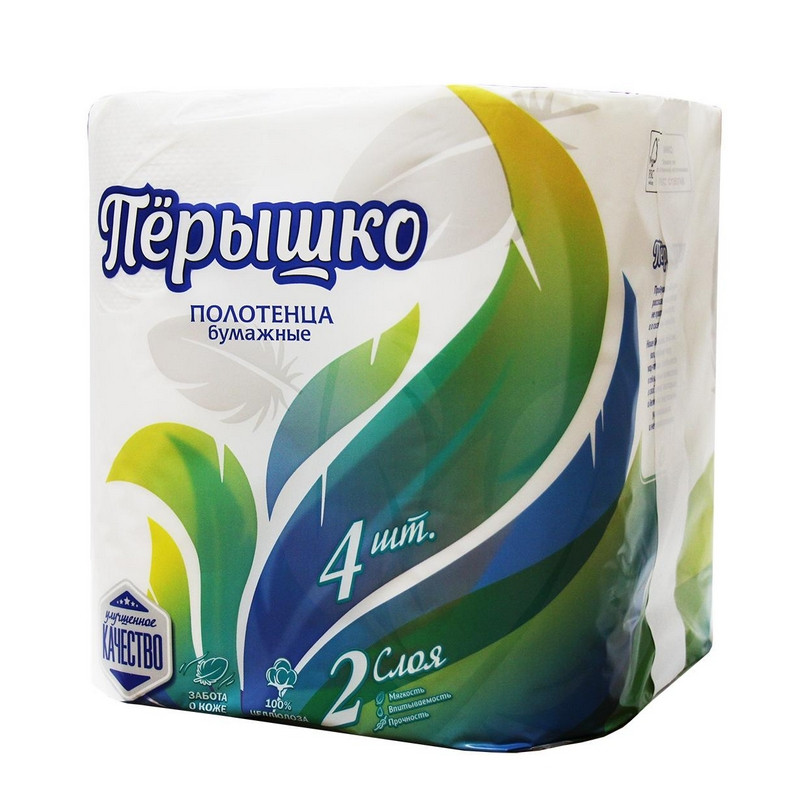 ГлавнаяСанитарно-гигиенические товарыПолотенца бумажные Полотенце бумажное Бумажное перышко 2сл 4рул/12
