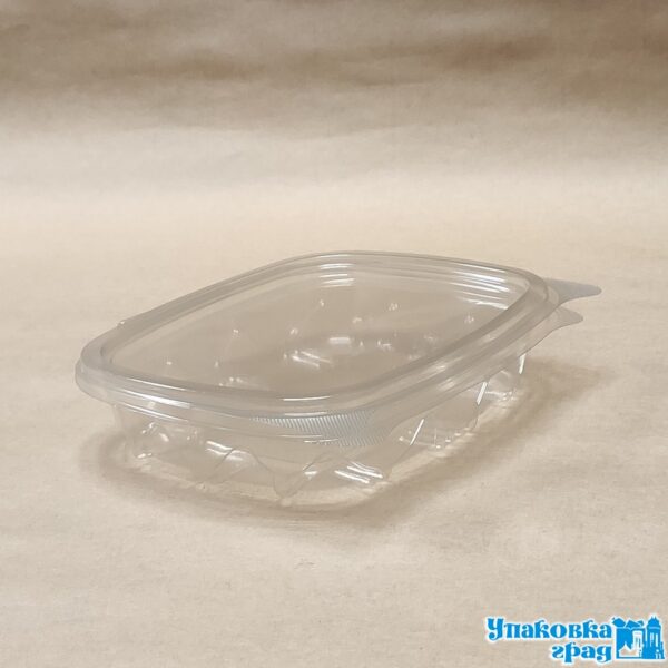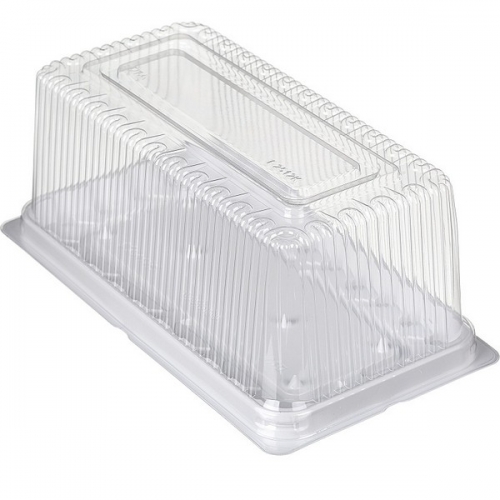 Прозрачный прямоугольный контейнер с совмещенной крышкой предназначен для фасовки кондитерских изделий. В коробе 550 шт.