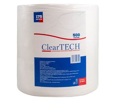 Протирочный нетканый материал ClearTECH размером 32х42 см, плотностью 60 г/м² и количеством листов 50 штук в упаковке (цвет зеленый) предназначен для полировки и протирки деталей от маслянистых жидкостей.