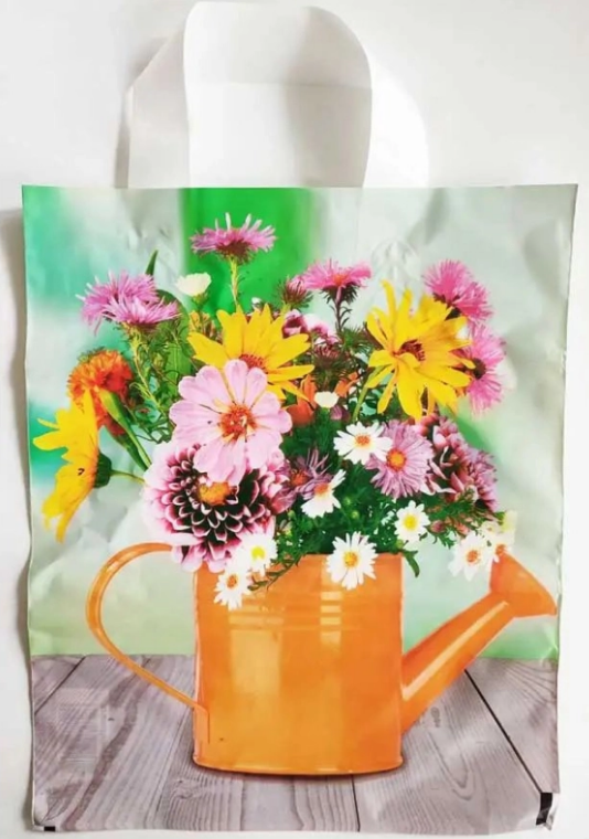Пакет с петлевой ручкой, размер 45*43+8см, плотность 100мкр. Внешне имеет гладкую поверхность. Пакет прочный, устойчив к разрыву, выдерживает максимальные весовые нагрузки. Продается упаковкой по 25 штук.
