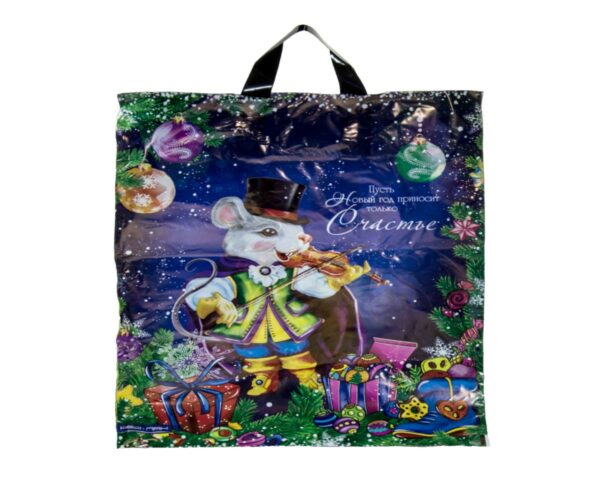 Новогодний пакет с петлевой ручкой 60*50см, 70мк. Используется для упаковки подарков, различных товаров. Продается по 25 штук.