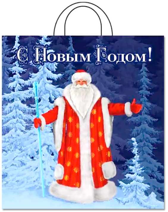 Новогодний пакет с петлевой ручкой 38*42см, 50мк. Используется для упаковки подарков, различных товаров. Продается по 25 штук.