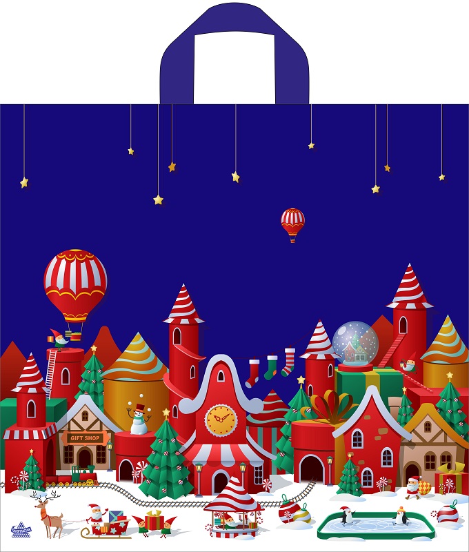 Новогодний пакет с петлевой ручкой 44*44см, 70мк. Используется для упаковки подарков, различных товаров. Продается по 25 штук.