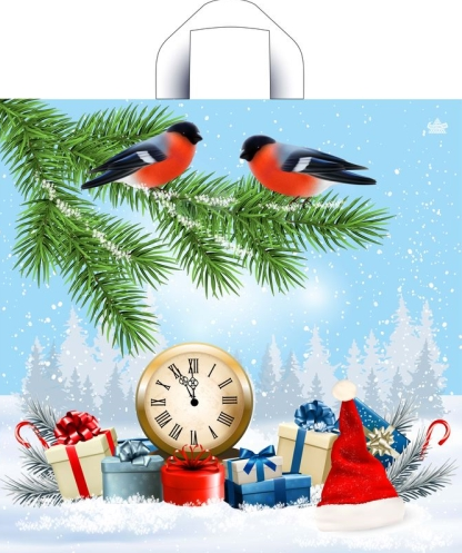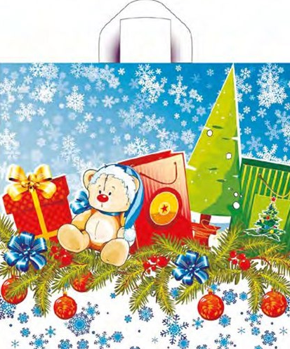 Новогодний пакет с петлевой ручкой 38*42см, 50мк. Используется для упаковки подарков, различных товаров. Продается по 25 штук.