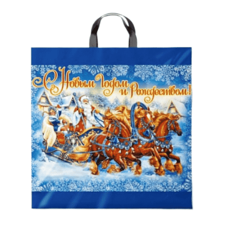 Новогодний пакет с петлевой ручкой 44*44см, 70мк. Используется для упаковки подарков, различных товаров. Продается по 25 штук.
