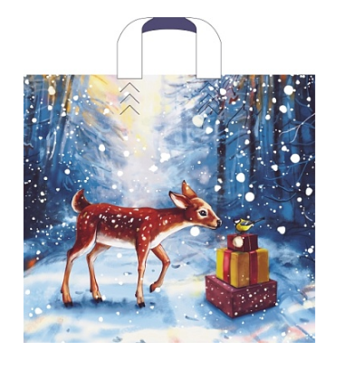 Новогодний пакет с петлевой ручкой 44*44см, 70мк. Используется для упаковки подарков, различных товаров. Продается по 25 штук.