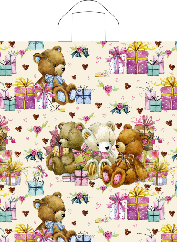 ПТЛ пакет ПНД 38*42+6=37мк Т Мишки с подарками /50шт*6уп/300/