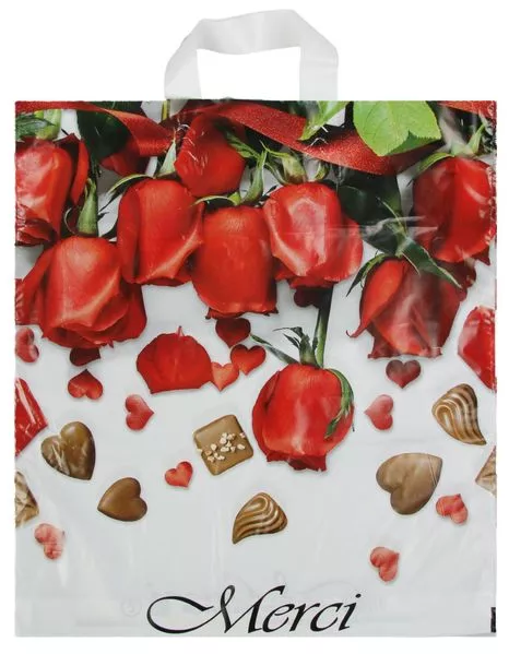 Пакет с петлевой ручкой, размер 38*42+6см, плотность 43мкр. Внешне имеет матовую, шершавую поверхность. Пакет прочный, устойчив к разрыву, выдерживает средние весовые нагрузки. Продается упаковкой по 50 штук.