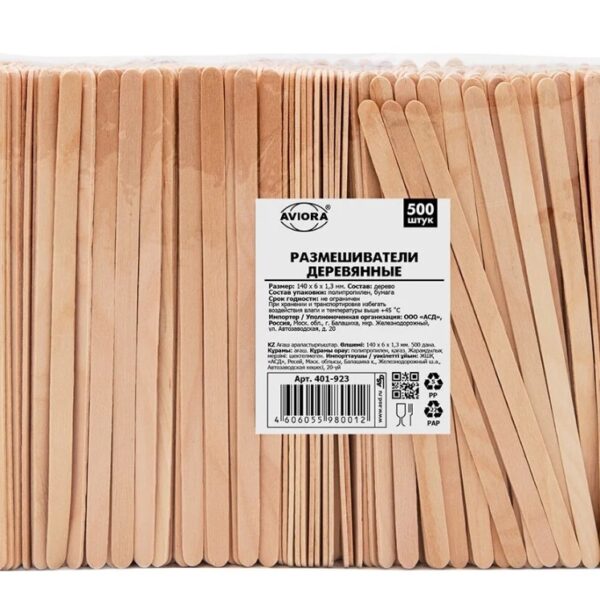 Размешиватель деревянный 140*6*1,3мм 250шт/уп в ин/уп Авиора 20шт/уп