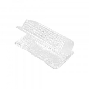 Прозрачный прямоугольный контейнер с совмещенной крышкой предназначен для фасовки кондитерских изделий. В коробе 590 шт.