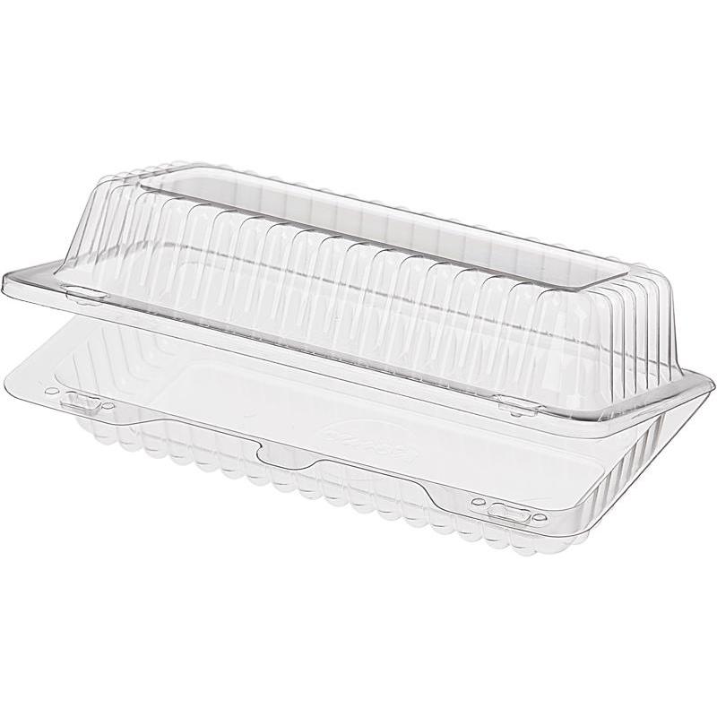Прозрачный прямоугольный контейнер с совмещенной крышкой предназначен для фасовки кондитерских изделий. В коробе 420 шт.