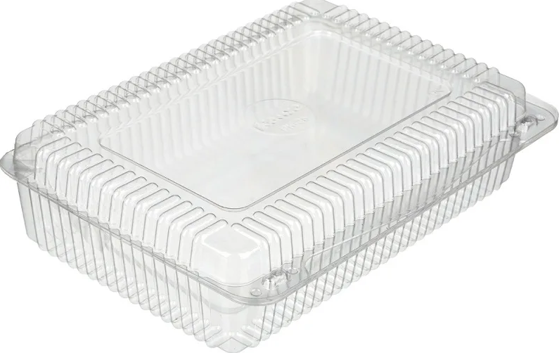 Прозрачный прямоугольный контейнер с крышкой предназначен для фасовки продуктов питания. Возможно использование в холодильнике и СВЧ. В коробе 500 шт.