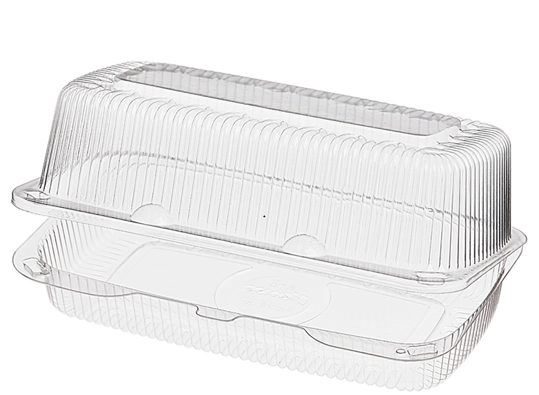 Прозрачный прямоугольный контейнер с совмещенной крышкой предназначен для фасовки кондитерских изделий. В коробе 590 шт.