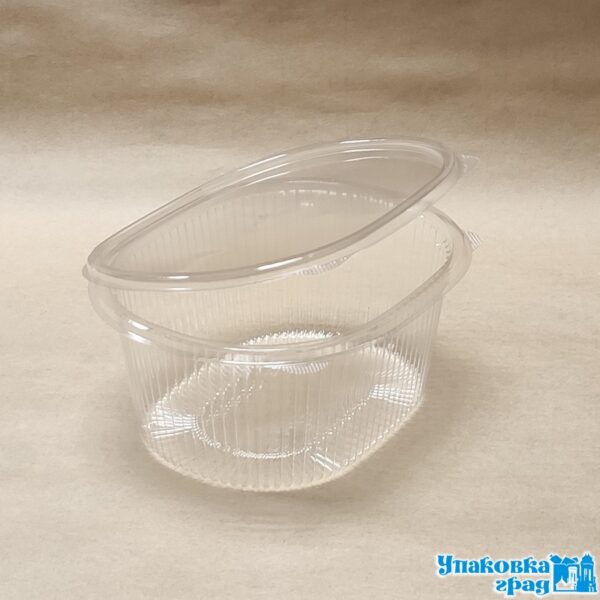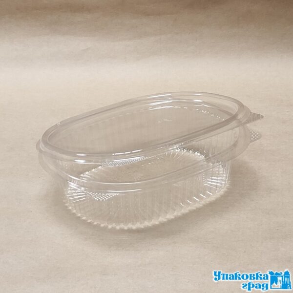 Овальный, прозрачный контейнер, для фасовки салатов, десертов, овощей, солений, холодных закусок. Отлично подходит для “еды на вынос”. Удобен при транспортировке.