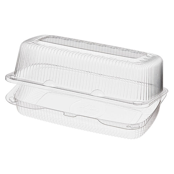 Прозрачный прямоугольный контейнер с совмещенной крышкой предназначен для фасовки кондитерских изделий. В коробе 350 шт.