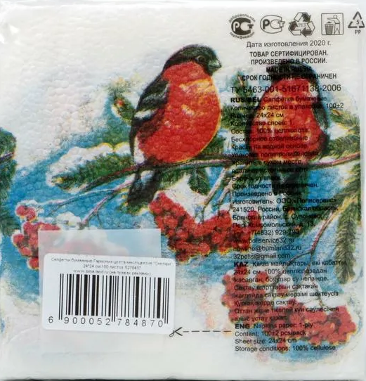 Салфетка 50л НГ 24*24см Снегири п/п /60шт/уп