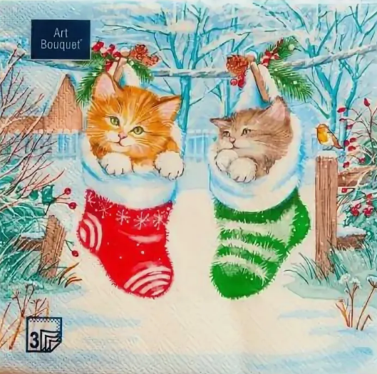 Салфетка 20л НГ 33*33см 3сл Bouguet Новогодний подарок Котята 12/уп