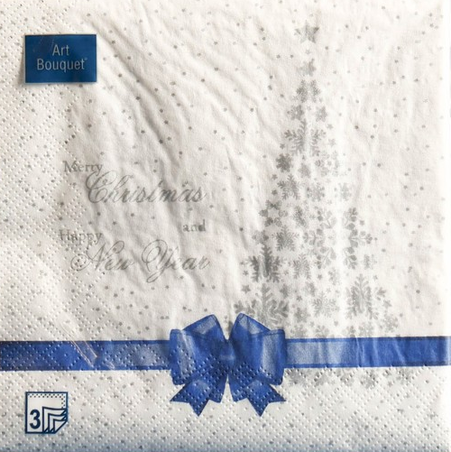 Салфетка 20л НГ 33*33см 3сл Подарок синяя лента/12 АртБукет