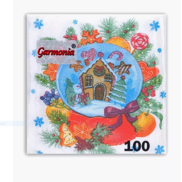 Салфетки бумажные однослойные 100 листов Снегири. Необходимы для банкетов, фуршетов, для оформления праздничной сервировки стола.