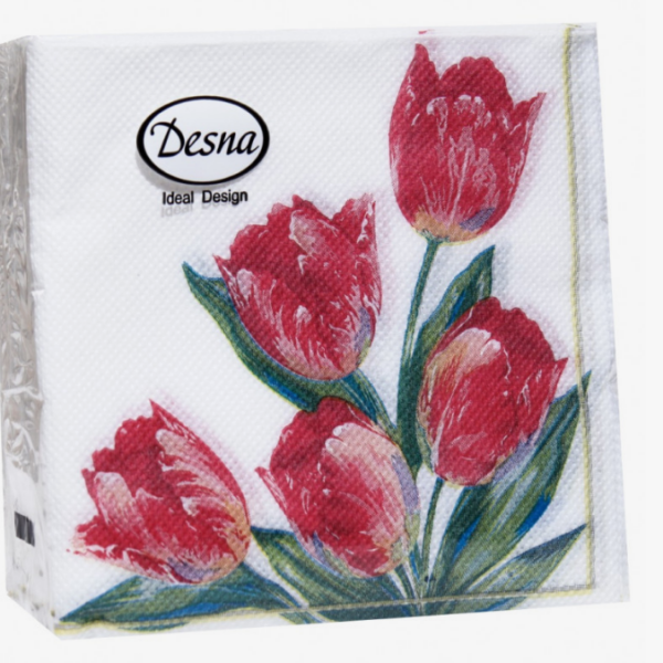 Салфетка 40л 24*24см Desna Design Красные тюльпаны /32/