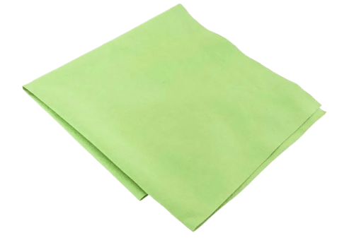 Светло-зеленая салфетка из микрофибры размером 30х30 см используется для уборки различных поверхностей. Салфетка не оставляет разводов и ворсинок, используется многократно и хорошо переносит стирку.