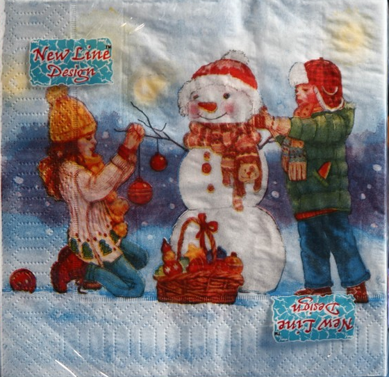 Салфетка 20л НГ 33*33см Снеговик и дети 2сл /20